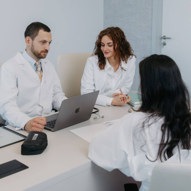 Chestionar anamnestic detaliat și consultație inițială cu scopul evaluării stării de sănătate a pacientului.